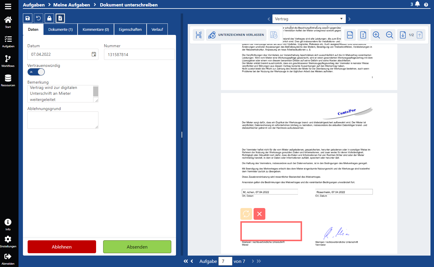 Zur Vertragsverwaltung gehören typische Aufgaben wie die Prüfung, Freigabe, Ablage und Wiedervorlage von Verträgen samt zugehöriger Dokumente und Informationen, die für einen Vertrag wichtig sind. In diesem Zusammenhang spielen auch gesetzliche Verpflichtungen, die eingehalten werden müssen, eine wesentliche Rolle.